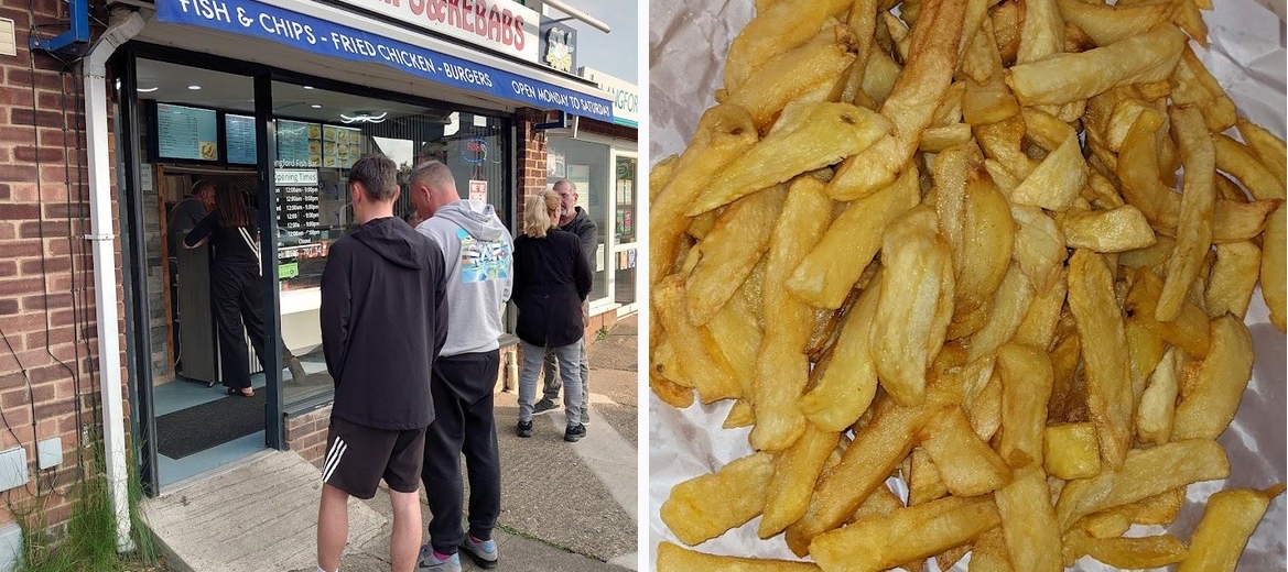 Chips were fresh and crisp! The fish?! My lord!! Hands down the best fish I've ever had. Very crisp and light. Not greasy! Owners a great guy aswell, the cheese and leek pie was surprisingly delicious! Although I would say work on the fried chicken as its always soggy/old and flavourless. But the fish and chips! Jesus!