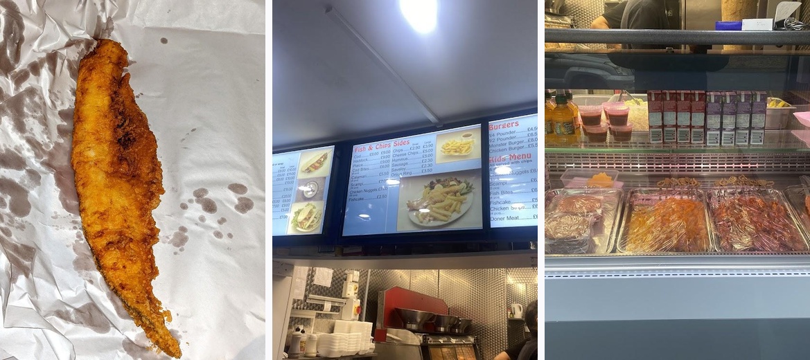 We had cod and chips, portions are generous, could have fed four people with with two portions!! It was freshly cooked, nice light batter, was lovely and hot when I got home.. Wait was 10 minutes to be cooked, so didn't have to wait for long and not greasy. Clean environment. Good service and friendly staff. Would use again.
